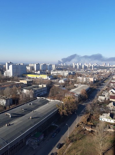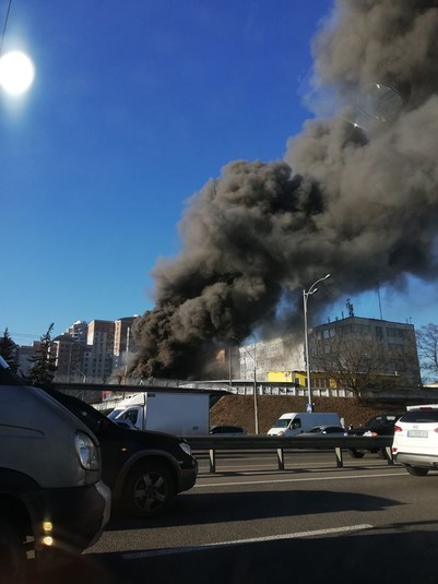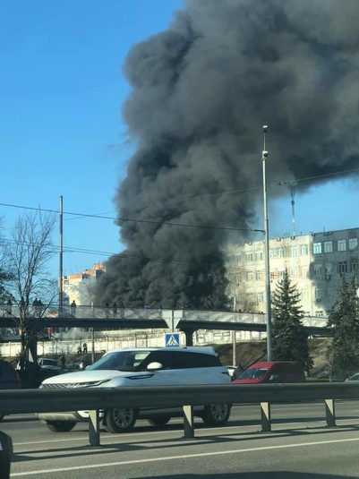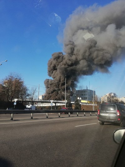 Кияни викладають у соцмережу фото пожежі. Чорний стовп диму видно за кілька кілометрів від місця займання.