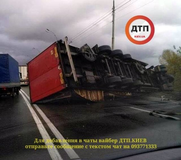 Як повідомляють свідки у соцмережі, на окружній дорозі перекинулася вантажівка.