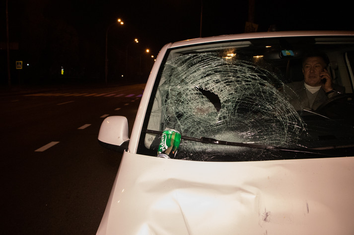У ніч на п’ятницю, 18 жовтня, на вулиці Академіка Заболотного в Києві, перед поворотом на вулицю Пирогівський шлях, сталася ДТП за участю Volkswagen Multivan і пішохода.