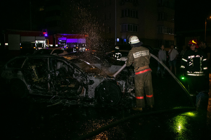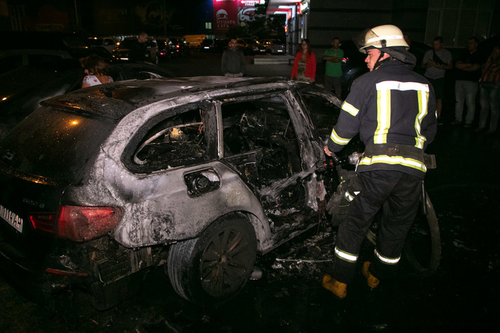 У ніч на вівторок, 10 вересня, на вулиці Срібнокільській, 20 у Києві сталася пожежа: у дворі житлового будинку горіли автомобілі BMW 520d, Hyundai i20 і Toyota Corolla, а також пошкоджено Volvo S80.