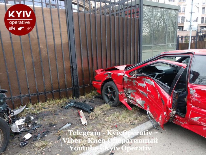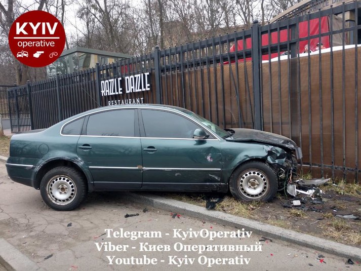 Як повідомляється на сторінці «Київ оперативний» у Facebook, автомобілі після зіткнення врізалися у паркан ресторану.