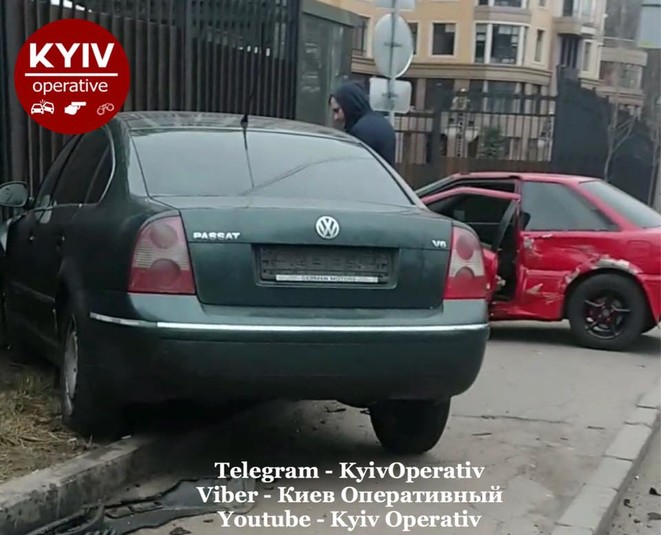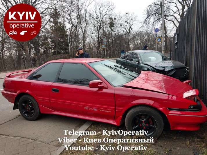 На Парковій дорозі на Печерську в паркан влетіли дві автівки (фото)