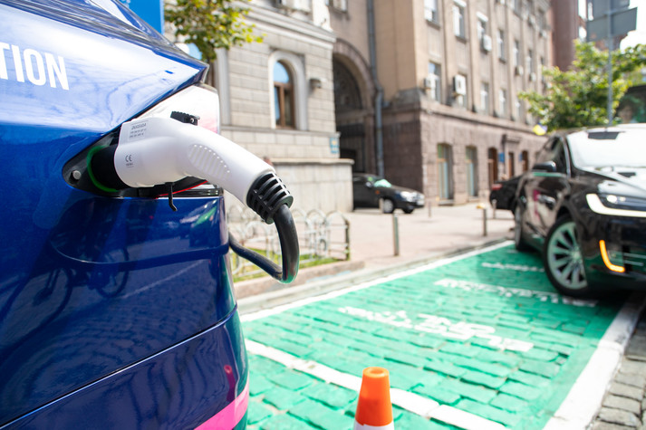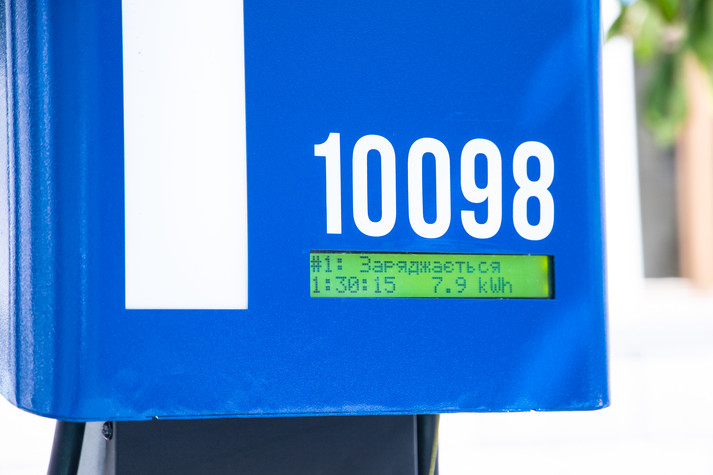 Паркувальні майданчики комунального підприємства «Київтранспарксервіс» у центрі столиці почали облаштовувати зарядними станціями для електромобілів. Так, одна з перших запрацювала на вул. Б. Хмельницького, 6.