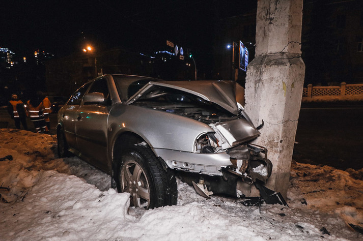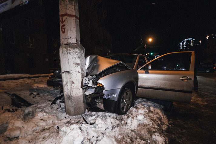 Удар прийшовся в задню частину автомобіля і був незначним, але на слизькій дорозі водій Skoda втратив контроль над автомобілем. Через це він вилетів з проїжджої частини і врізався в електроопору.