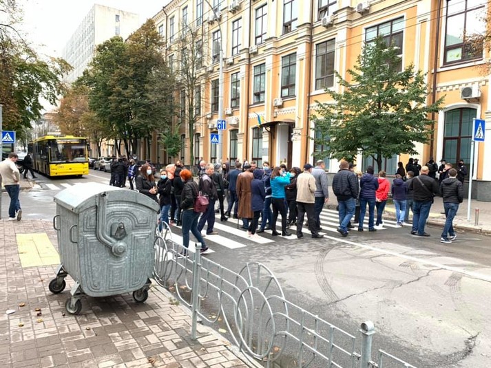 Сьогодні, 1 жовтня, мешканці Печерського району перекрили вулицю Московську на знак протесту проти будівництва висотки біля метро Арсенальна на Московській, 7.