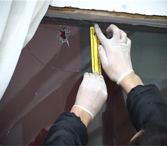 На місці до правоохоронців звернулася суддя. За її словами, перебуваючи на робочому місці, вона помітила у верхній частині склопакету невеликий отвір, а між склопакетами - предмет, схожий на кулю.