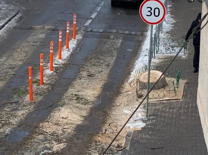 На Печерську спиляли дерево, у яке постійно врізалися авто (фото)