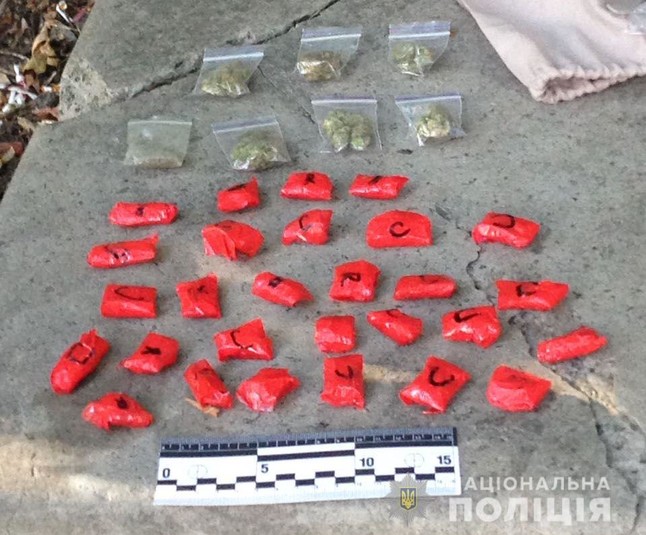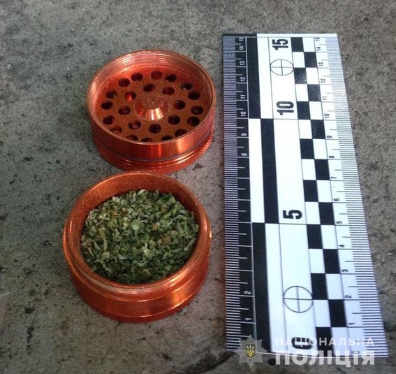 У затриманого вилучили 28 пакетиків червоного кольору та 7 поліетиленових пакетиків із зеленою речовиною рослинного походження. Окрім того, у хлопця знайшли пристрої для паління та подрібнення рослинної речовини. Вилучене направили для проведення експертизи.
