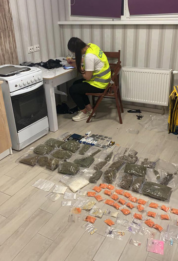 У ході проведення обшуків за місцем проживання та в автомобілі затриманого правоохоронці виявили та вилучили наркотичні засоби та психотропні речовини різного типу в особливо великих розмірах: близько 3 тис. таблеток МДМА, 2 кг канабісу, 150 г амфетаміну, 10 г солі, 10 марок (лзд), 500 г грибів, 30 г гашишу.