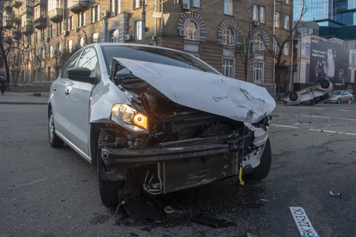 У суботу, 29 лютого, в центрі Києва на перехресті через зіткнення перекинувся автомобіль.