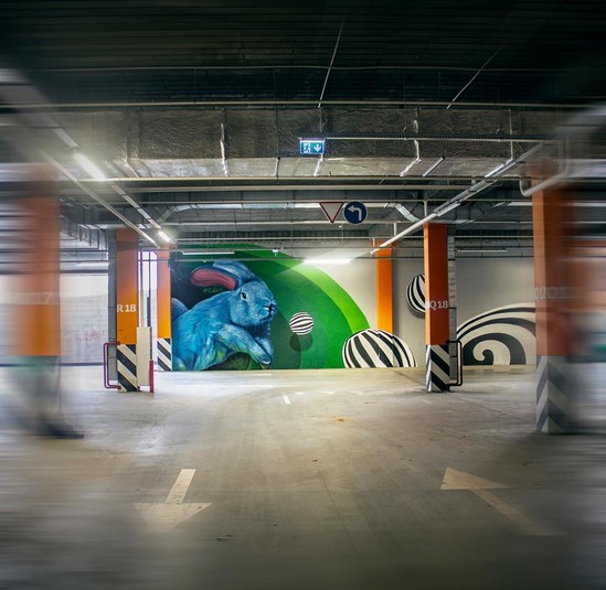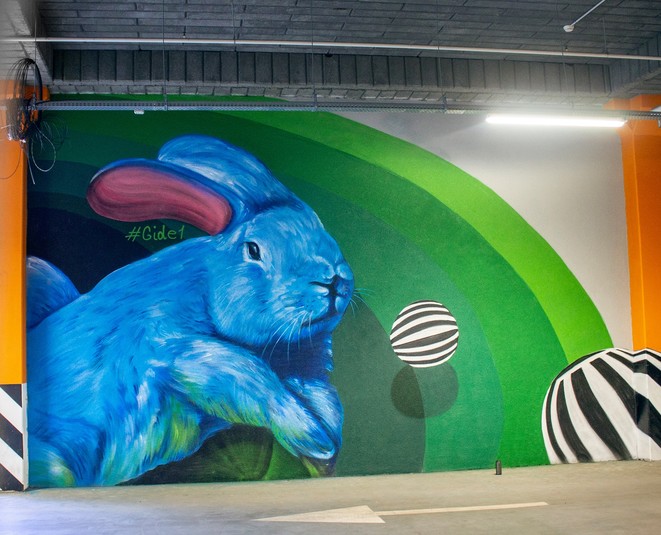 У Києві на парковці торгово-розважального центру Rive Gauche з’явився яскравий мурал – казковий кролик.