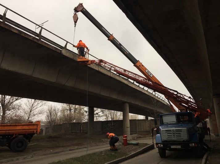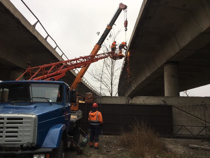 Сьогодні, 29 листопада, триває демонтаж аварійних карнизних блоків на естакаді Південного мостового переходу.