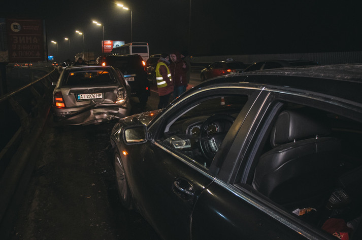 За словами водія Skoda, він потрапив у невелику ДТП, зіткнувшись з автомобілем Nissan. На місце події прибув наряд поліції. Правоохоронці оформляли аварію, коли водій BMW на великій швидкості влетів у Skoda. Через це Fabia ударила Nissan, що стояв попереду, а той врізався в автомобіль патрульної поліції.