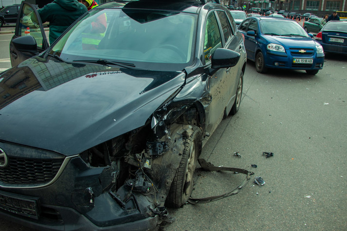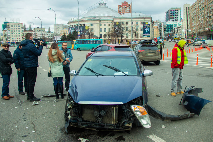 У середу, 27 лютого, на площі Перемоги у Києві сталася ДТП за участю автомобілів Mazda CX-5 і Kia Cerato. Від удару Kia розвернуло на дорозі.