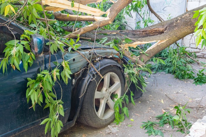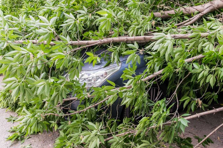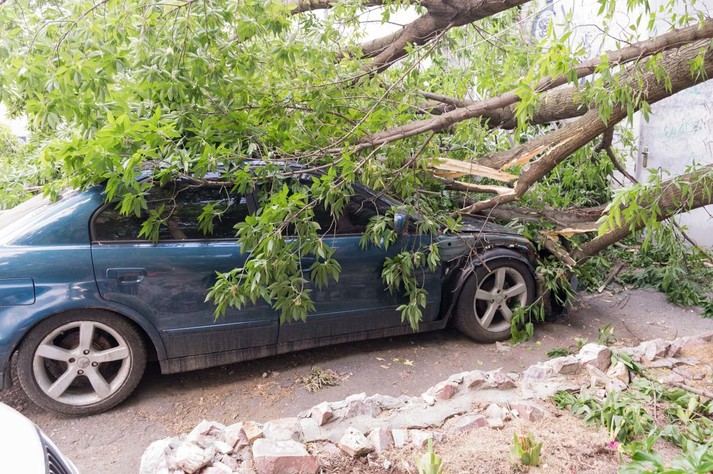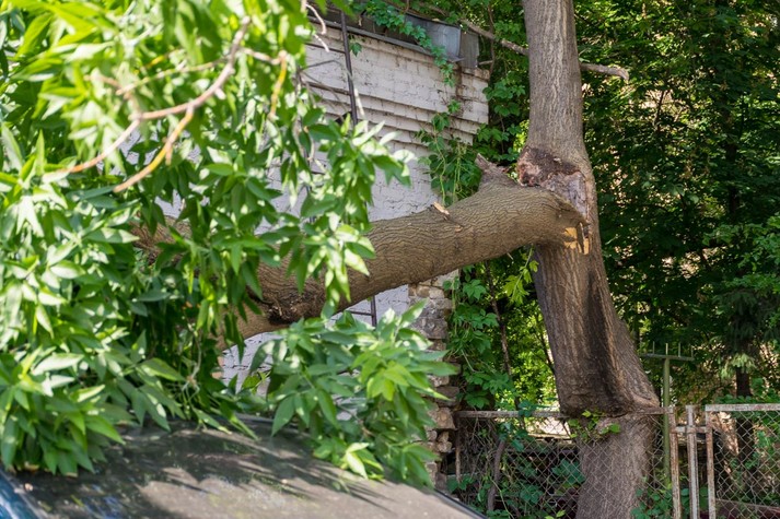 У п'ятницю, 25 травня, в Подільському районі Києва на припарковані автомобілі впало дерево. На щастя, обійшлося без постраждалих.