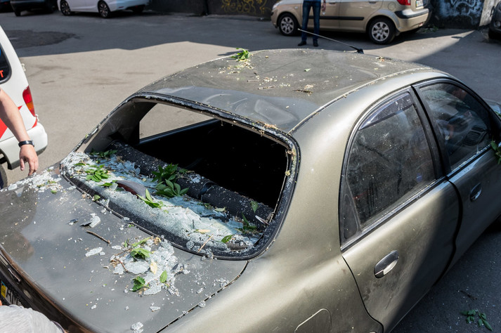 Автомобілі постраждали досить сильно: у BMW розбитий бампер, у Daewoo - дах, заднє скло і лобове скло. У Citroën тріснуло переднє скло. Найменше зачепило Fiat.
