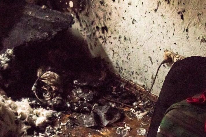 Спочатку надійшла інформація про те, що горить горище. Однак по прибуттю на місце було встановлено, що джерело запаху - квартира на третьому поверсі. З вентиляції квартири періодично виривався дим. Пожежникам довелося за допомогою бензорізу відчиняти двері, щоб потрапити всередину. Через те, що двері броньовані, знадобилося трохи більше часу, ніж зазвичай.