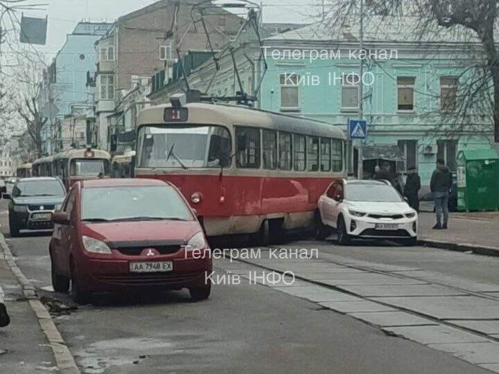 «Затримується рух трамваїв №№ 11,12,16,19 на розі вул. Межигірська та вул. Ярославська в напрямку пл.Шевченка з причини ДТП. На місце викликано поліцію», – йдеться у повідомленні.
