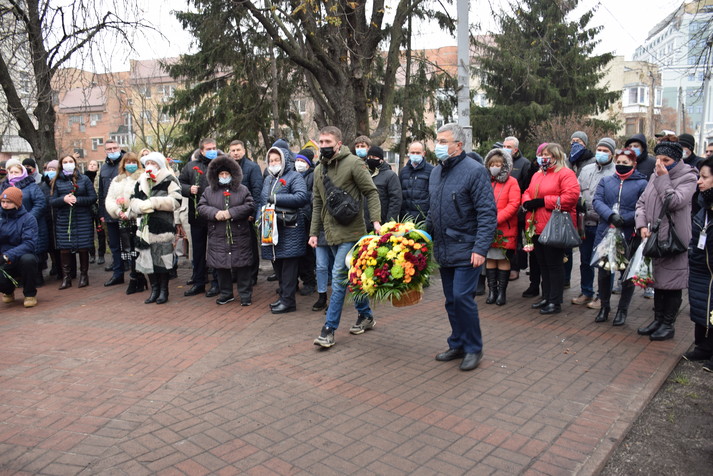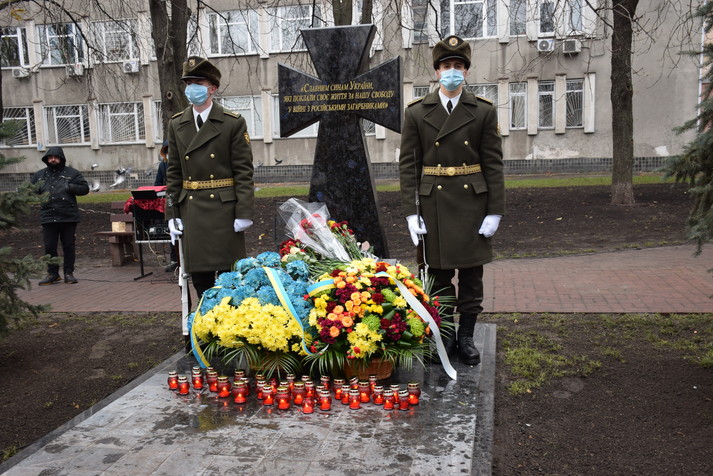 Усі присутні вшанували пам’ять героїв, які загинули під час антитерористичної операції на сході України, хвилиною мовчання та поклали квіти до пам’ятного знаку.