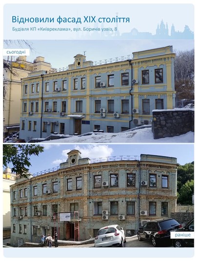 У Подільському районі Києва завершено ремонт фасаду будівлі КП «Київреклама», якій вже понад сто років. Про це повідомив начальник управління з питань реклами КМДА Олександр Смирнов на своїй сторінці у Facebook.