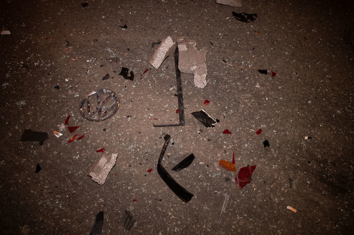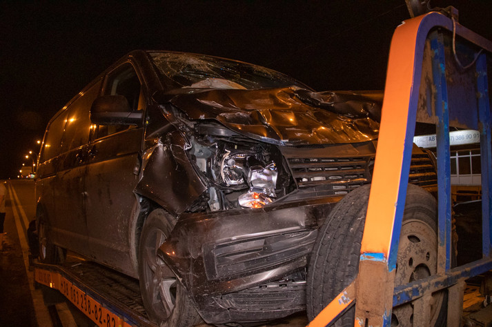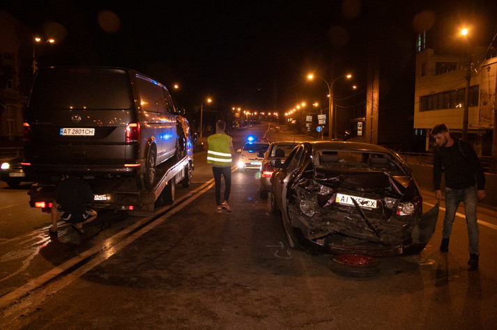 Аварія трапилася близько 22:00. Рухаючись у напрямку в бік метро «Почайна», водій Volkswagen переїжджав міст і з невідомої причини не помітив, що на спуску з шляхопроводу йде оформлення ДТП. Зупинитися Transporter зміг тільки, вдарившись у Hyundai. Від удару у Hyundai вм'яло в салон багажник.