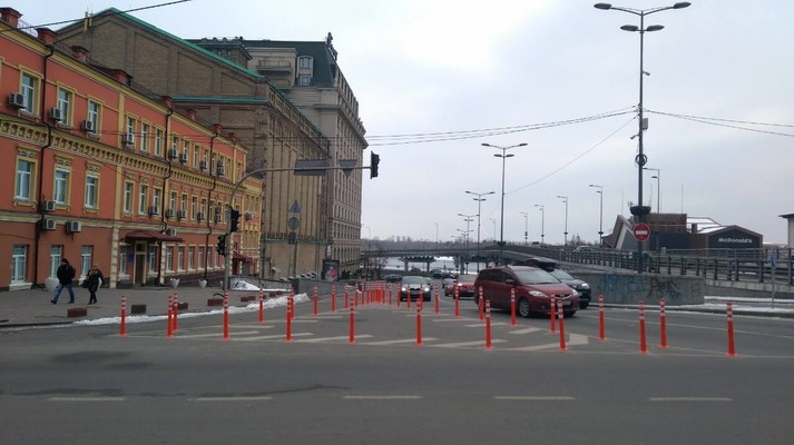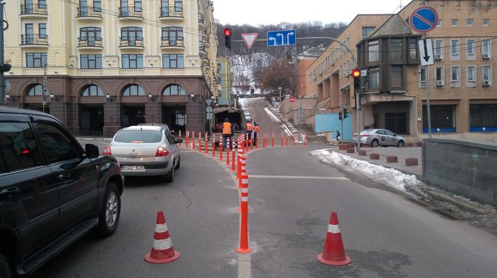 «Наразі по вулиці Боричів узвіз в напрямку від Набережного шосе три смуги руху, з яких дві смуги – для подальшого руху на Володимирський узвіз, і одна – направо, на вулицю Сагайдачного. Однак у години пік окремі водії здійснюють вказаний поворот наліво з крайньої правої смуги – і на перехресті намагаються повернутися на смугу руху на Володимирський узвіз. Враховуючи, що по Володимирському узвозу наявні дві смуги руху в бік Хрещатика, це спричиняє конфліктні та аварійно-небезпечні ситуації і, відповідно, заторові явища», - йдеться в повідомленні.
