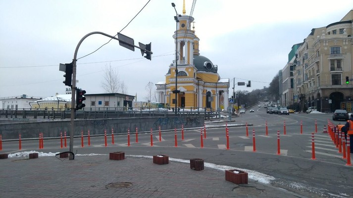 У суботу, 9 лютого, на перехресті вулиць Боричів узвіз та Сагайдачного/Володимирський узвіз було встановлено дорожні віхи на розгалуженні смуг руху в бік Володимирського узвозу та вулиці Сагайдачного. Це має унеможливити порушення правил дорожнього руху – поворот наліво, на Володимирський узвіз, з правої смуги руху вулиці Боричів узвіз. Про це повідомляє КП «Центр організації дорожнього руху».