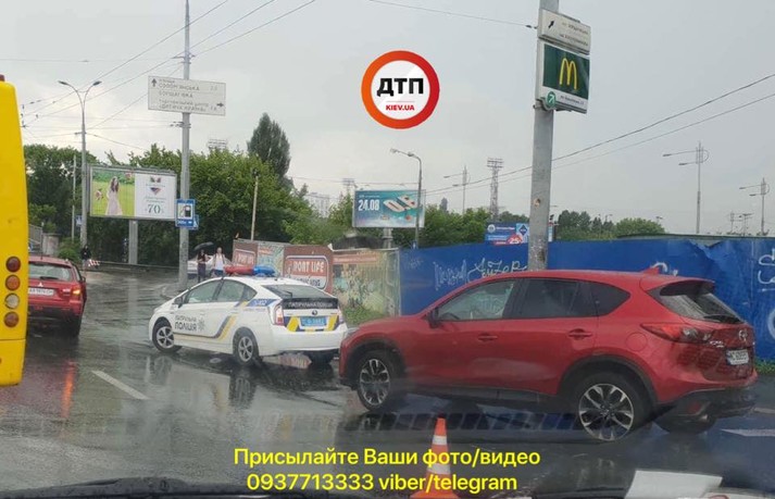 «По дотичній зіткнулися три автомобілі. Можливо, причиною став дощ та порушення правил маневрування. Заїзд на вул. Борщагівську, практично перекритий. Затор від Охматдиту», - йдеться в повідомленні.