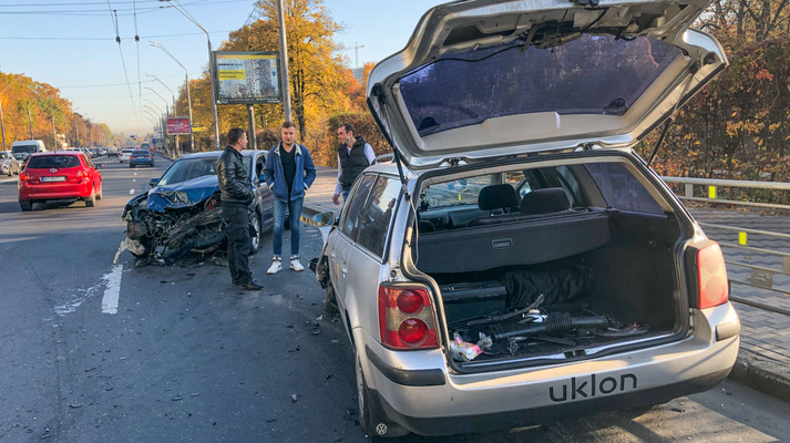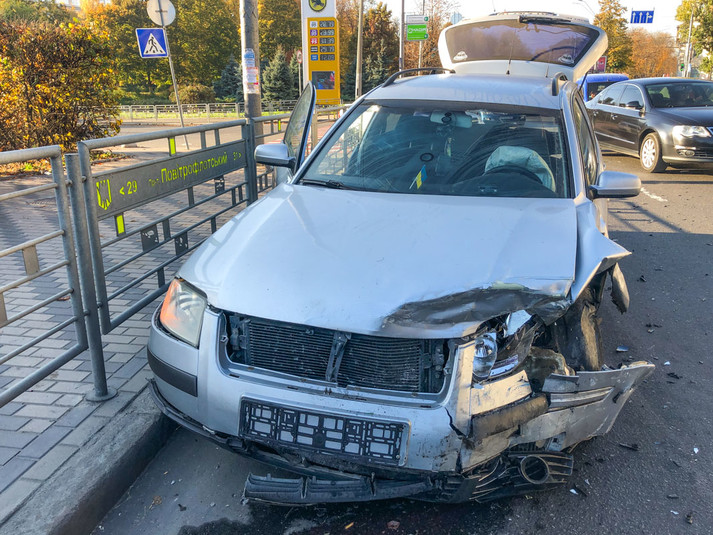 У п'ятницю, 18 жовтня, вранці у Солом'янському районі Києва сталася ДТП за участю двох автомобілів: на Повітрофлотському проспекті, 32 не розминулися Mazda і Volkswagen служби таксі Uklon.
