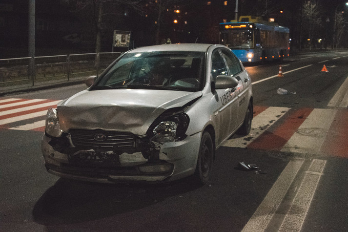 Автомобіль Hyundai Accent служби Uber рухався по проспекту в бік Севастопольської площі. Перед світлофором на перехресті з вулицею Стадіонною водій «наздогнав» кур'єра «Сушия» на малолітражці Smart. Про це повідомляє Інформатор.