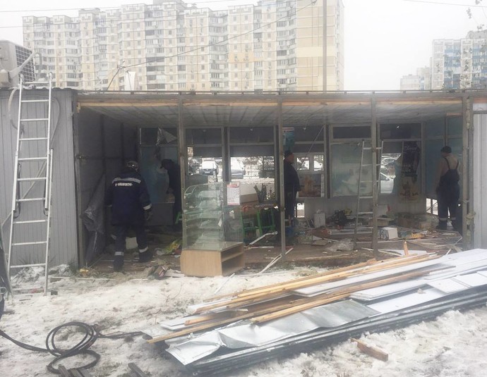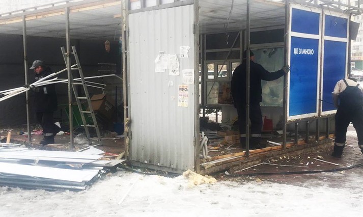 На Позняках демонтували кіоск, де було і випити, і закусити (фото)