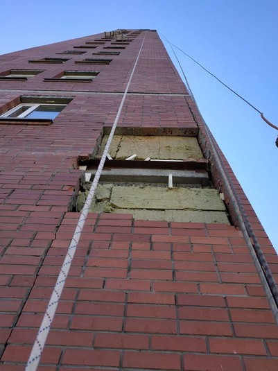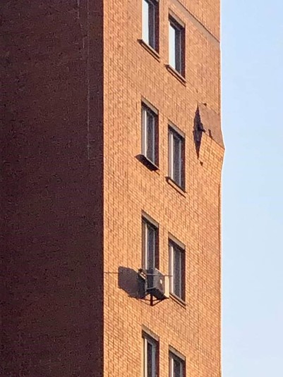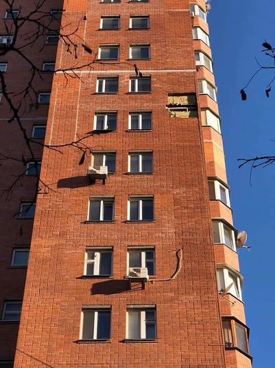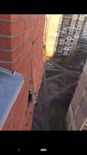 У будинку на вул. Анни Ахматової, 13Г у Дарницькому районі Києва (масив Позняки) пластами відвалюється цегла.