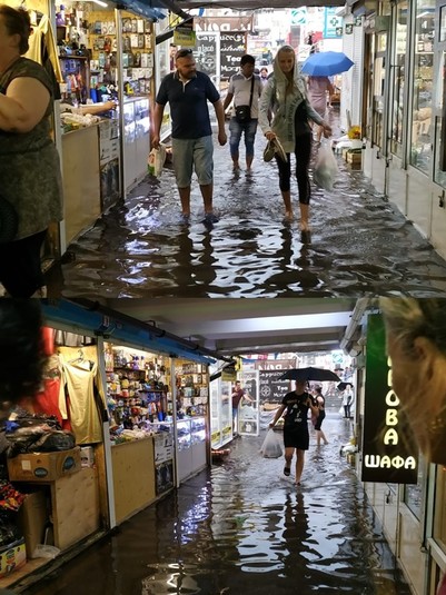 «Титанік іде на дно. Люди в підземці оточені водою. Познячкі традиційні, коли грозові». – прокоментувала вона фото.