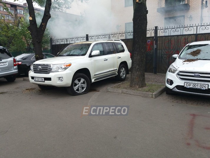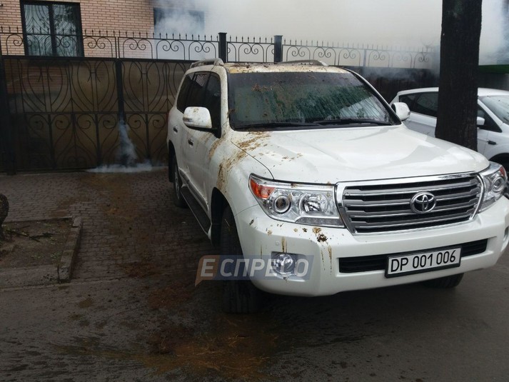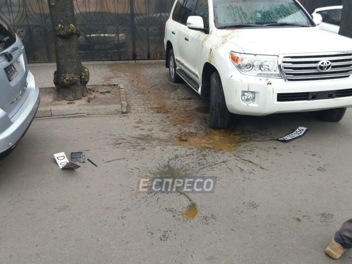 У четвер, 27 вересня, у Києві невідомі залили фекаліями автомобілі з дипломатичними номерами гостей прощальної вечері екс-голови «Росспівробітництва» Костянтина Воробйова.