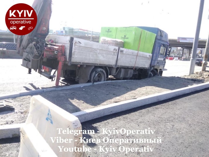 «Водій вантажівки зловив ґаву і наїхав на бордюр. Внаслідок цього колеса автівки не витримали і пробилися», - йдеться в повідомленні.