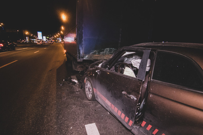 За словами водія вантажівки, він стояв на «аварійці» на узбіччі на проспекті Бажана поруч зі станцією метро «Славутич». У цей момент ззаду в MAN влетів Fiat. Передня частина легкового авто виявилася під вантажівкою і отримала значні пошкодження.