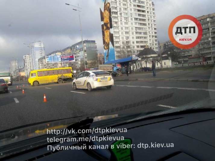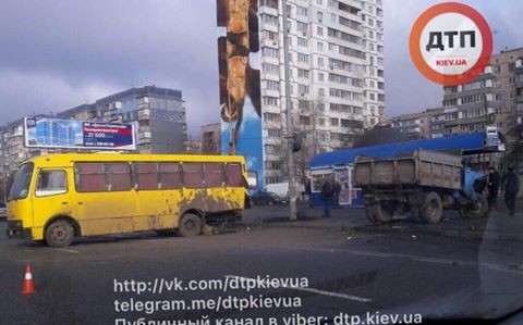 Вранці у Києві вантажівка не розминулася з маршрутним таксі.