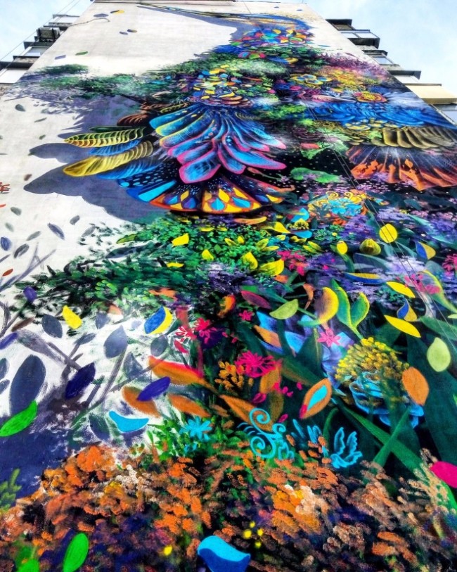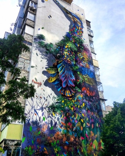 На проспекті Бажана з'явився яскравий «пташиний» мурал