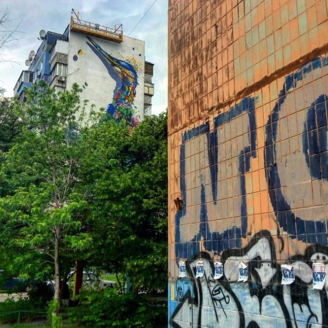 Художник Ернесто Мараньє закінчив свій мурал у Києві на проспекті Бажана 5є. Про це повідомив куратор проекту «Арт Сіті» Гео Лерос в Facebook.