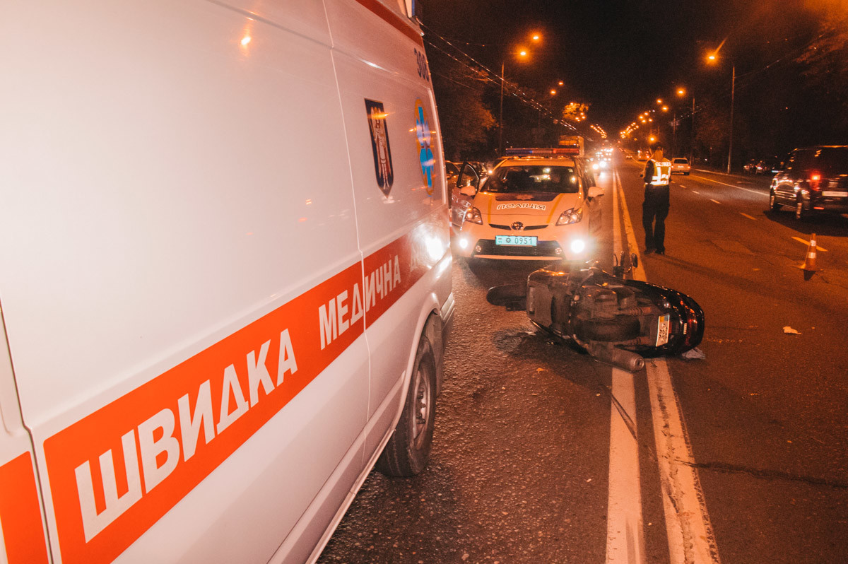 У середу, 17 жовтня, на проспекті Лобановського, 10 у Києві сталася ДТП за участю мотоцикліста: пілот мотоцикла влетів в автомобіль Honda.