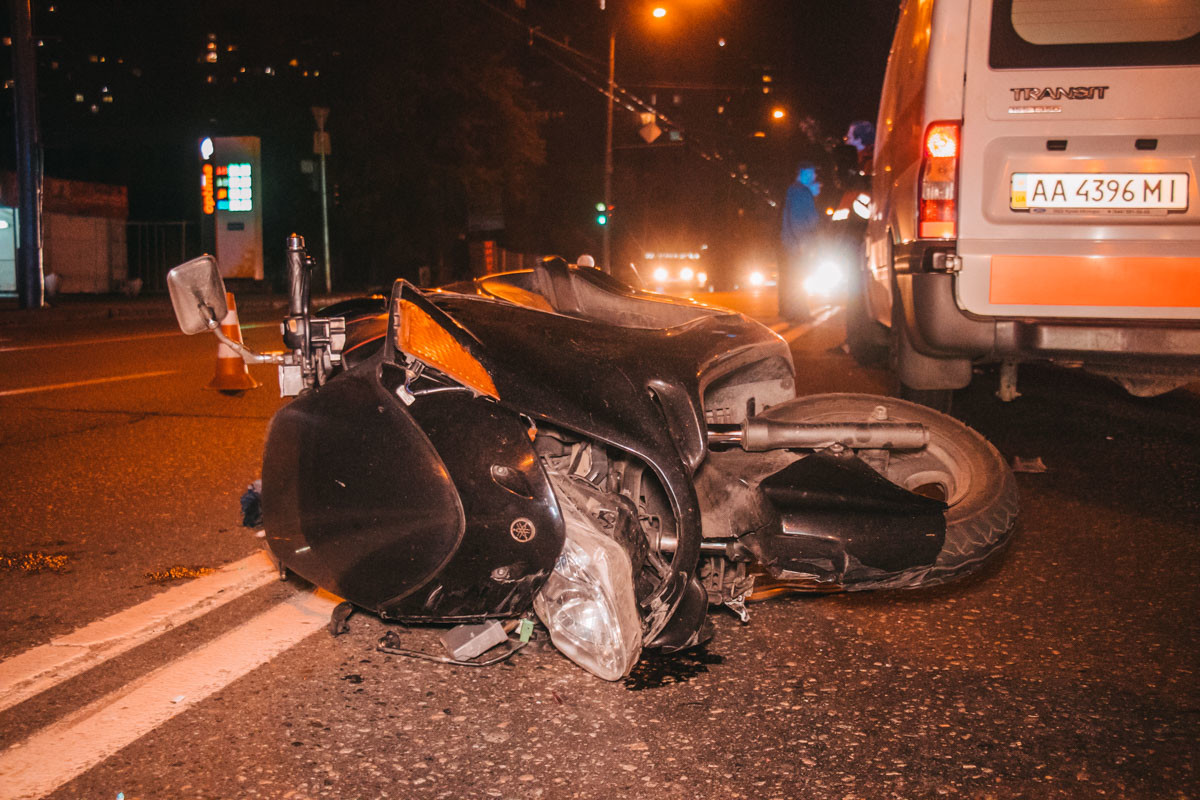 За попередніми даними, водій автомобіля Honda рухався по проспекту Лобановського в бік Севастопольської площі. Автомобіліст вирішив розвернутися на одному з перехресть. У цей момент з боку Севастопольської площі їхав мотоцикліст. Пілот мотоцикла не встиг зреагувати на маневр автомобіля і врізався в нього ззаду. Удар був таким сильним, що чоловік вилетів із сідла.