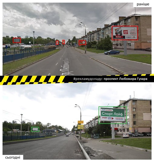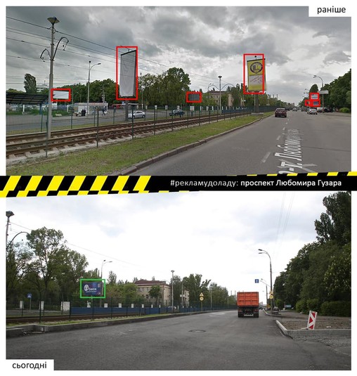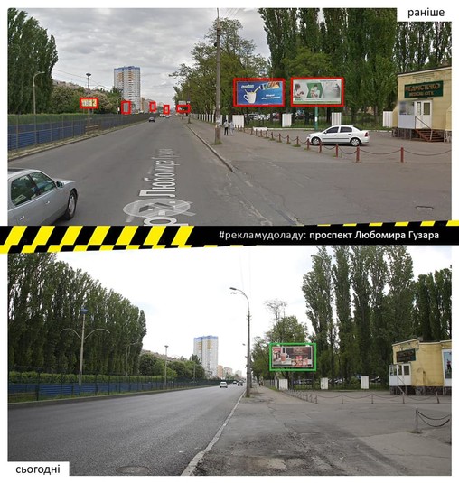 Таким чином, із 29 рекламних конструкцій на проспекті лишилося 13. Також зменшилася і площа реклами: з 1062 кв. м до 468 кв. м.