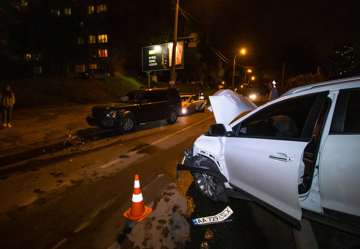 У вівторок, 7 травня, у Голосіївському районі Києва на проспекті Науки, 98 сталася ДТП: зіткнулися автомобілі Land Rover і Chery Tiggo 2. Обидві машини отримали серйозні пошкодження.