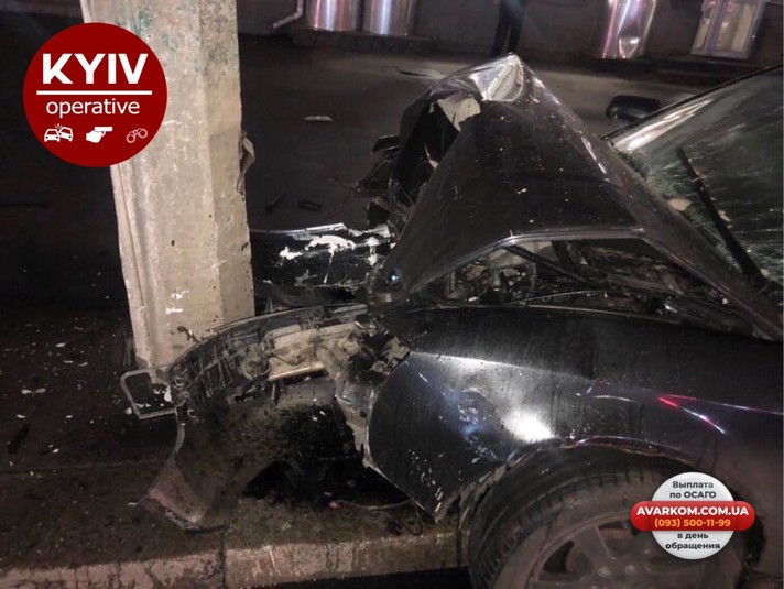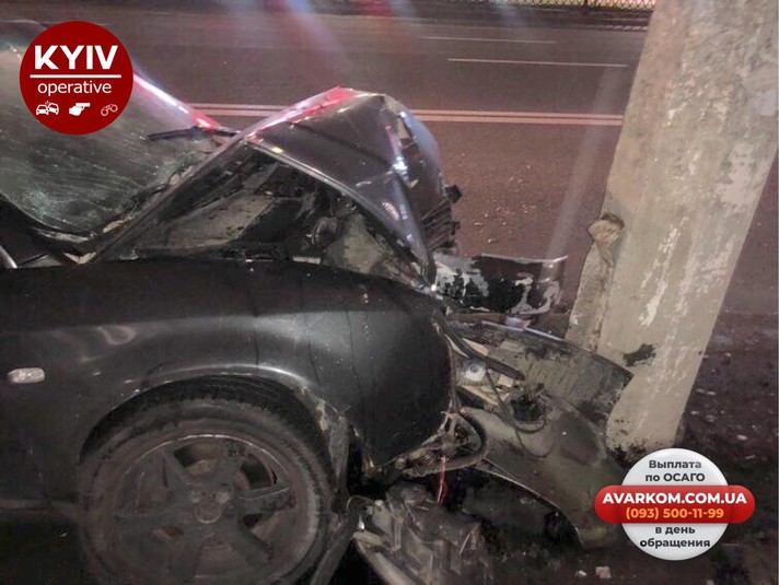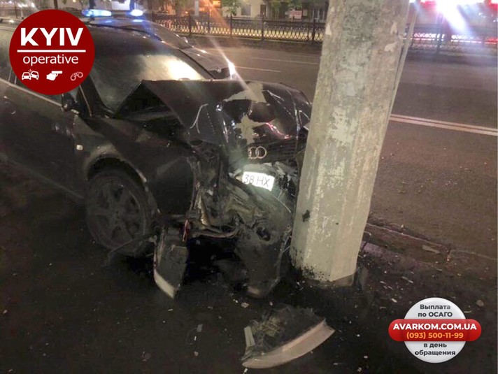 Нічна ДТП у Києві: Audi влетіла у стовп (фото)