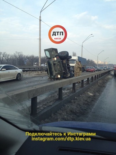 Як повідомляє dtp.kiev.ua, на шляхопроводі перекинувся військовий автомобіль.