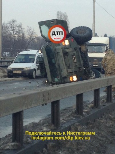 «ДТП в Києві на проспекті Перемоги: на шляхопроводі Нивки перекинувся військовий броньовик «Кугуар», - йдеться в повідомленні.