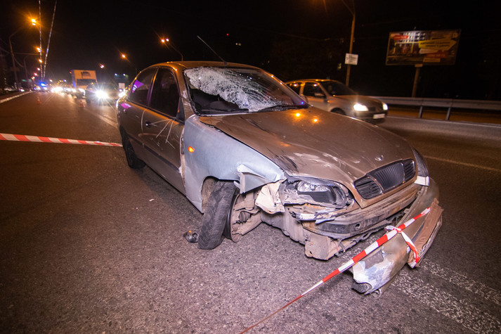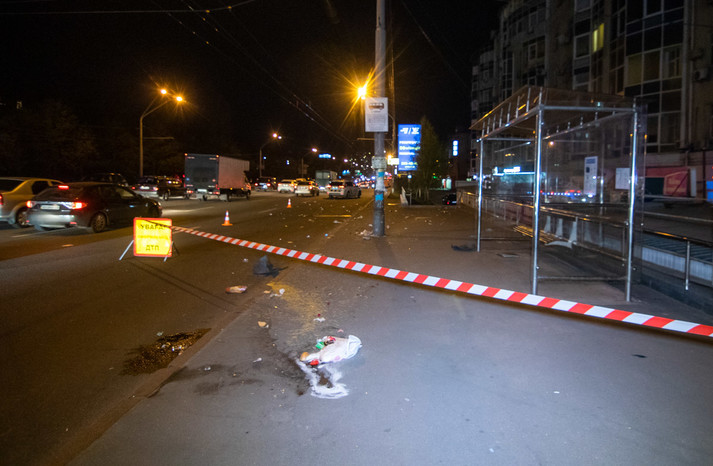 В неділю, 21 квітня, увечері на проспекті Перемоги в Києві сталася аварія: автомобіль Daewoo Lanos влетів у зупинку і збив людей, які чекали на громадський транспорт.
