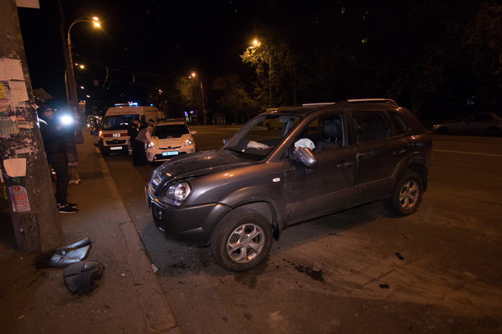У неділю, 20 травня, в Києві на проспекті Свободи (Подільський район) сталася ДТП з перекиданням: Hyundai Tucson врізався у стовп і перекинувся.