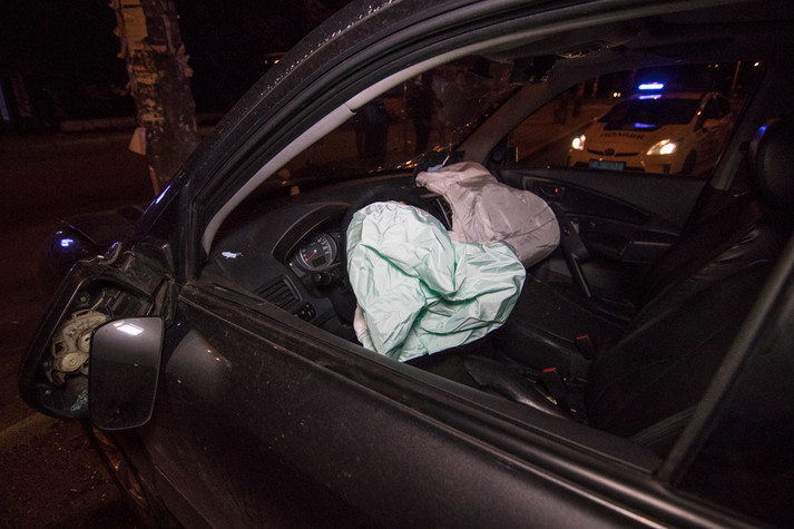 Водій був пристебнутий, в машині спрацювали подушки безпеки.
