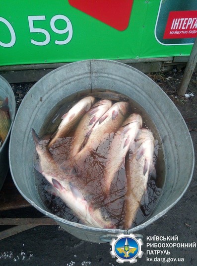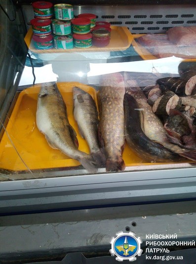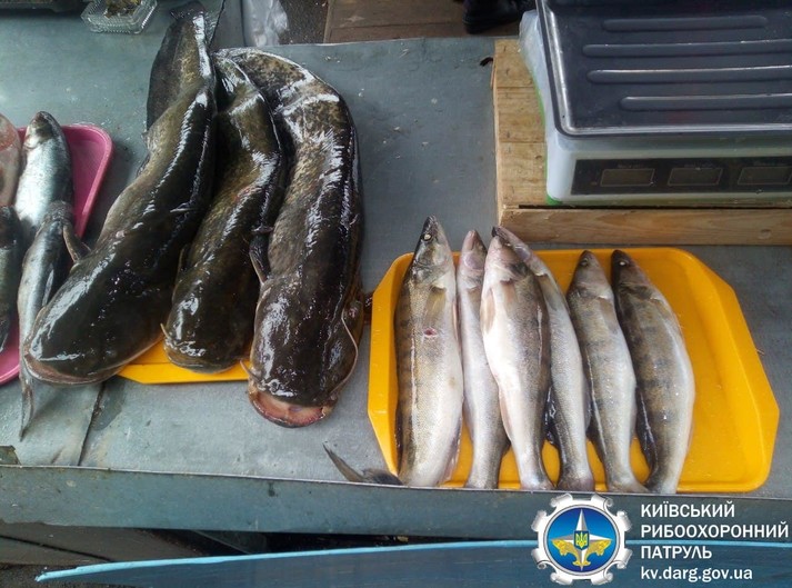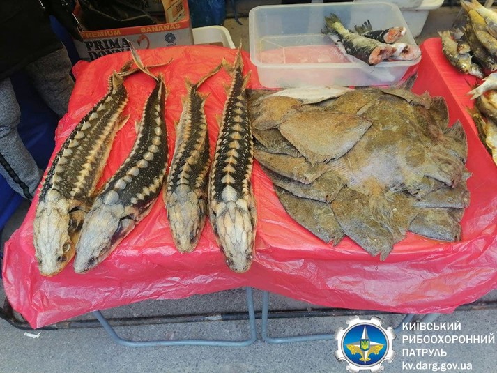 Зокрема працівники рибпатруля на ринку «Деміївський», що у Голосіївському районі столиці, у селі Гатне та на ярмарці у Вишгороді виявлили трьох осіб, які здійснювали незаконну реалізацію водних біоресурсів загальною вагою 70,5 кг: сом, короп та камбала річкова (глоса) – по 15 кг, товстолоб – 11 кг, щука – 3,5 кг, судак – 3 кг. Також виявлено 8 кг занесеного до Червоної книги України осетра російського.